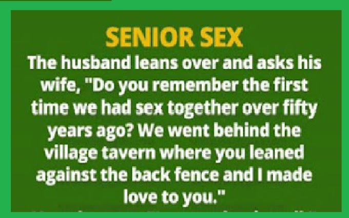 The husband leans over and asks his wife, "Do you remember the first time we had sex together over fifty years ago? We went behind the village tavern where you leaned against the back fence and I made love to you."