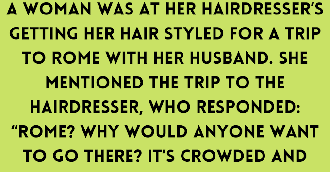 A woman was at her hairdresser’s getting her hair styled for a trip to Rome with her husband. She mentioned the trip to the hairdresser, who responded: